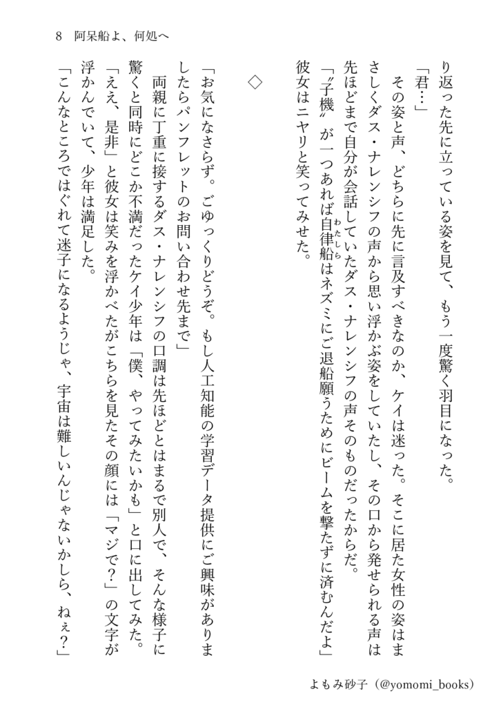 幼少期の伏井出ケイが宇宙船の人工知能と会話する話。